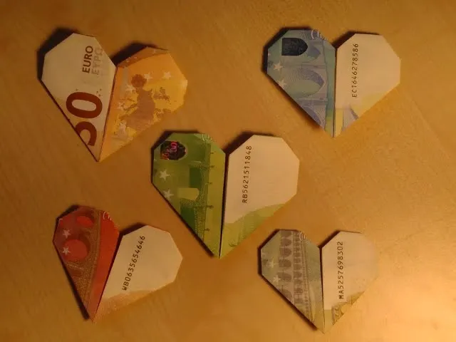 Jak złożyć serduszko z banknotów.